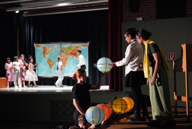 „Man sieht nur mit dem Herzen gut. Das Wesentliche ist für die Augen unsichtbar.“ Mit diesen berühmten Worten lädt Der kleine Prinz (nach dem Klassiker von Antoine de Saint-Exupéry) dazu ein, unsere Welt und die Menschen, die auf ihr leben, mit den Augen eines Kindes zu sehen. In poetischen Bildern erzählt die Geschichte von Freundschaft, Liebe und dem Wert der kleinen Dinge im Leben. Damit bietet sich dieses Stück für eine eigene Inszenierung im Rahmen unseres diesjährigen Schulprojekts „One World“ hervorragend an. Der Dramentext von Holger Gottschalk wurde jedoch stark verändert, durch eigene Schülertexte ergänzt oder ersetzt, ganze Szenen und Figuren haben die Schauspielerinnen und Schauspieler neu erdacht. Auch die kreative, moderne Inszenierung bricht mit althergebrachten Theatertraditionen. Sie erfolgte durch die Kinder und Jugendlichen selbst, die sich gegenseitig inspirierten und voneinander lernten, was Theater alles kann und darf. Unsere Theatergruppe nimmt Sie mit auf eine ungewöhnliche Reise zu fernen Planeten und absurden Begegnungen.