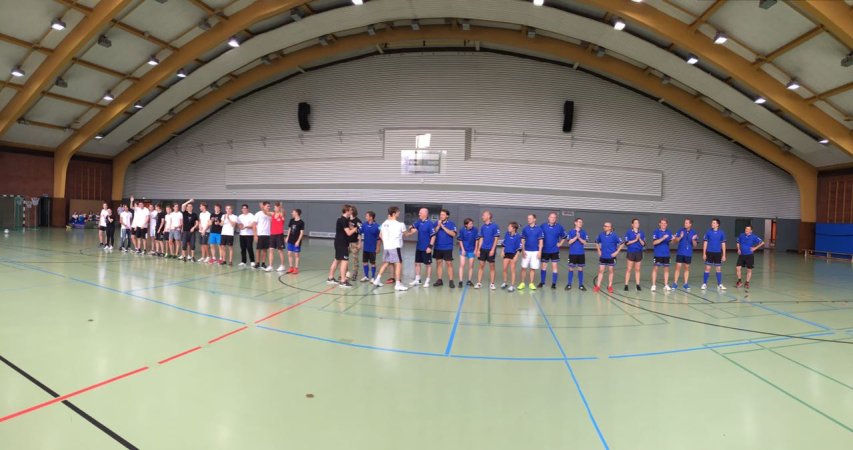 Im Anschluss an den ABI-Scherz fand in diesem Jahr ein Sportturnier zwischen den aktuellen Abiturienten und dem Lehrerkollegium in der vollbesetzten Mönchseehalle statt. Beim „Hütchenknaller“, einem mit Völkerball vergleichbaren Abwurfspiel, behielten zunächst die Abiturienten die Oberhand und siegten mit 2:0. Chancenlos waren die Schüler hingegen beim Volleyball. Hier zeigten die Lehrkräfte, dass sich das wöchentliche Training im „LehrerInnensprt“ auszahlt und erteilten den Abiturienten mit 25:9 eine Lektion. Der anschließende ABI-Kick musste also die Entscheidung über den Gesamtsieg bringen. Seit 2003 hat das Lehrerteam nicht mehr gewonnen. Dieses Jahr war der Sieg greifbar nahe. Beim Stande von 0:0 zu Beginn der zweiten Halbzeit scheiterten die Lehrer am Pfosten und zwei Mal freistehend am Torhüter der Schüler. So kam, was kommen musste. Die mangelhafte Chancenauswertung wurde prompt mit dem 0:1 bestraft. Dies war auch nach 40 Spielminuten in einer äußerst fairen Begegnung der Endstand. Mit dem knappsten Ergebnis seit 14 Jahren musste sich das LehrerInnen-Team erneut geschlagen geben und muss nun ein weiteres Jahr auf einen Erfolg im ABI-Kick warten.