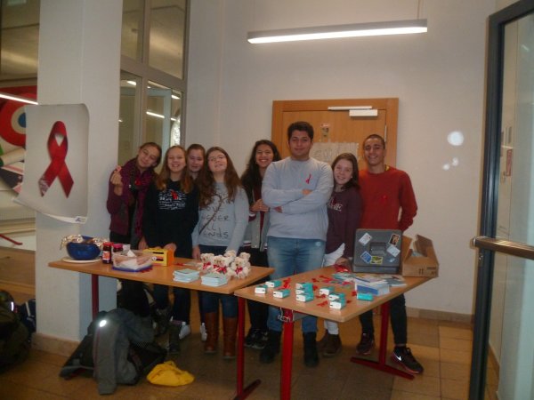 Wie jedes Jahr hat das Ugandagremium am 1. Dezember den Welt-Aids-Tag an die Schule gebracht, um Solidarität mit den HIV betroffenen Menschen zu zeigen. Zum Verkauf standen natürlich die Aids-Schleifen (Red Ribbons), Aids Schleifen in Form von Plätzchen auf die man rote Marmelade schmieren konnte, Teddybären mit Aids-Schleifen, Taschentücher, Notizblöcke und Info-Materialien.