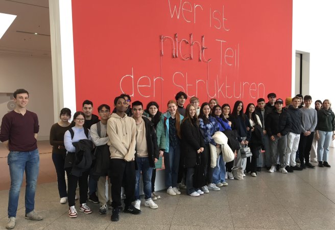 Nach einer ca. 3-stündigen Fahrt mit dem Reisebus sind wir, die zwei Ethikkurse der aktuellen J1, bei der Bundeskunsthalle in Bonn angekommen. Wir wurden freundlich in Empfang genommen und nach einer kleinen Pause gingen auch schon die zwei Führungen mit Angestellten vor Ort los.