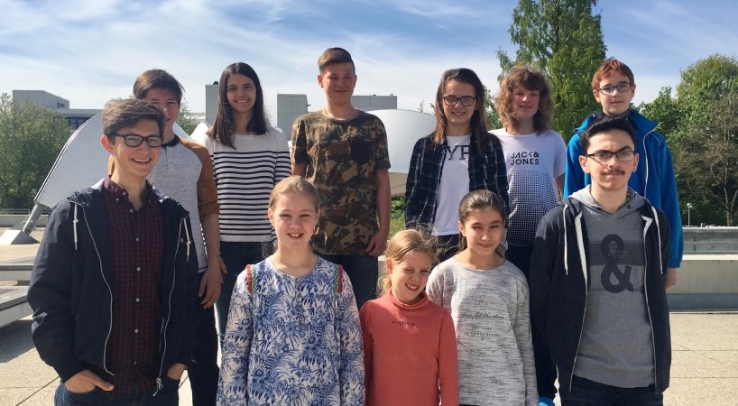Sie waren am 30. April zur Zwischenrunde in der EXPERIMENTA in Heilbronn geladen. Mit von der Partie waren Matthias Cala, Alexander Khorenko, Paul Fischer, Florian Rüdele, Madlen Staudt, Kamsajen Kailaivasan (hinten von links) sowie Matteo Sander, Marcel Machauer, Polina Sachsenmaier, Lucie Gatzmaga (vorne von links). Auf dem Bild fehlen Nils Werner und Bekim Hisenaj
