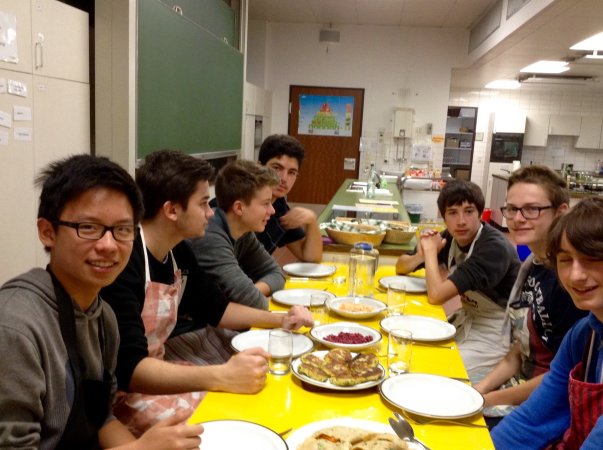 Die NWT-Gruppe (Ernährung) der Klasse 9b war am Freitag, dem 23. Oktober 2015, bei einem Workshop an der Fachschule für Landwirtschaft zum Thema "Essen - prima Klima". Nach einer kurzen Begrüßung wurden die Schüler in die Lehrküche geführt und haben dort in Kleingruppen aus regionalen und saisonalen Zutaten ein leckeres Essen zubereitet. Es gab Kartoffelküchle, mit Gemüse gefüllte Pfannkuchen, ein Salat mit Rote Bete und einen Apfel-Karottensalat. Nach dem Kochen wurden die Speisen gemeinsam verzehrt. Einige waren überrascht wie gut es geschmeckt hat. Nachdem alles wieder sauber war ging es mit dem Lernzirkel weiter. An den einzelnen Stationen erhielten die Schüler viele Informationen über den Zusammenhang zwischen den Lebensmitteln und unserem Klima. Es ging dabei hauptsächlich um den CO2-Abdruck. Aber auch verschiedene (Umwelt-)Siegel, das Einkaufsverhalten und der Saisonkalender von regionalem Obst und Gemüse wurden thematisiert.