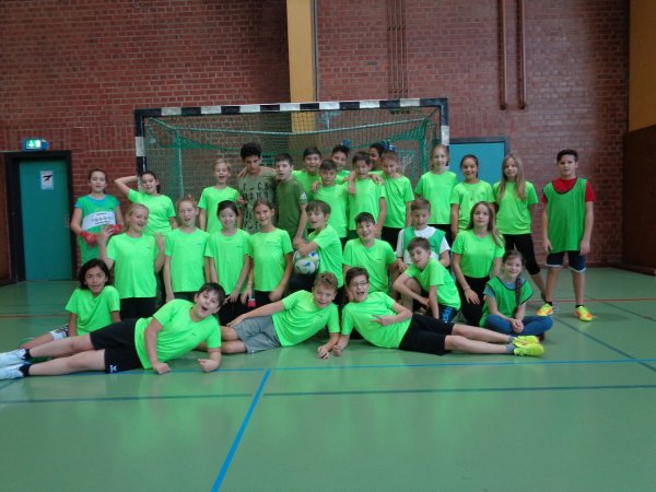 Beim Fußballturnier der 6. Klassen des Robert-Mayer-Gymnasiums in der Mönchseehalle gewann die Klasse 6b die Gesamtwertung und konnte aus den Händen der Sportlehrer Wentz und Bindereif den Siegerpokal entgegennehmen. Jede Klasse stellte zu diesem Turnier drei Mannschaften, die getrennt gewertet wurden. Dank ihrer Mädchenmannschaft, die alle ihre Spiele gewinnen konnte, siegte die 6b vor der 6c, der 6a und der Klasse 6d.