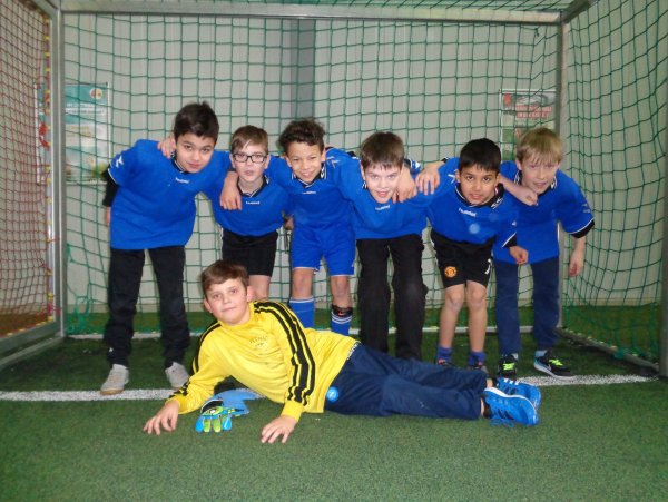 RMG Jungen 1, v.l.: Kerim Aslantas, Sergen Özdemir, Leandro Held, Nikolas Sidiras Adnan Razaq Joshua Konrad; vorne: Torhüter Giona Montanella, alle 5c
