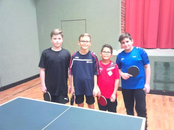 Sieger Jungenturnier: v.l.: Marvin Luge 5b (Platz 2), Arthur Bauer 5a (Turniersieger), Colin Esslinger 5a (Platz 3), Yasir Karabacak 5a (Platz 4)