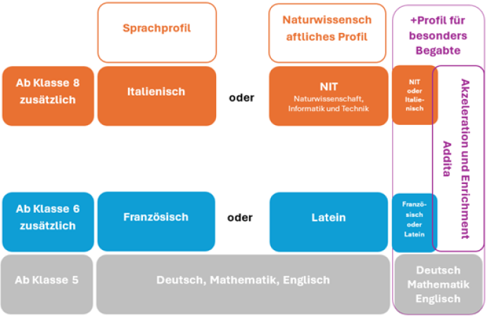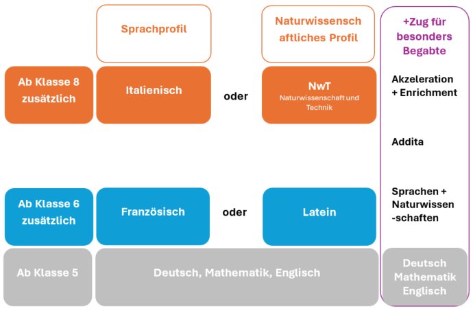 Bildungsgänge am Robert-Mayer-Gymnasium - Hauptfächer in Unter- und Mittelstufe